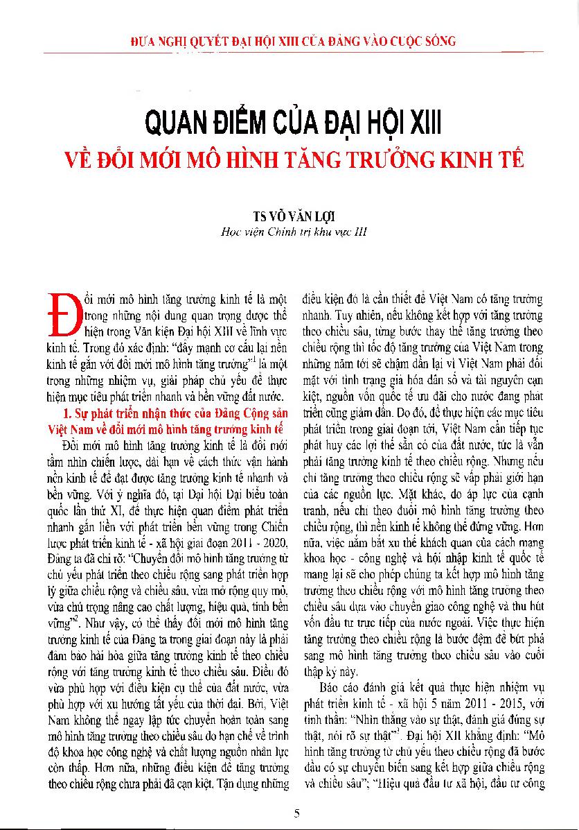 Quan điểm của Đại hội XIII về đổi mới mô hình tăng trưởng kinh tế