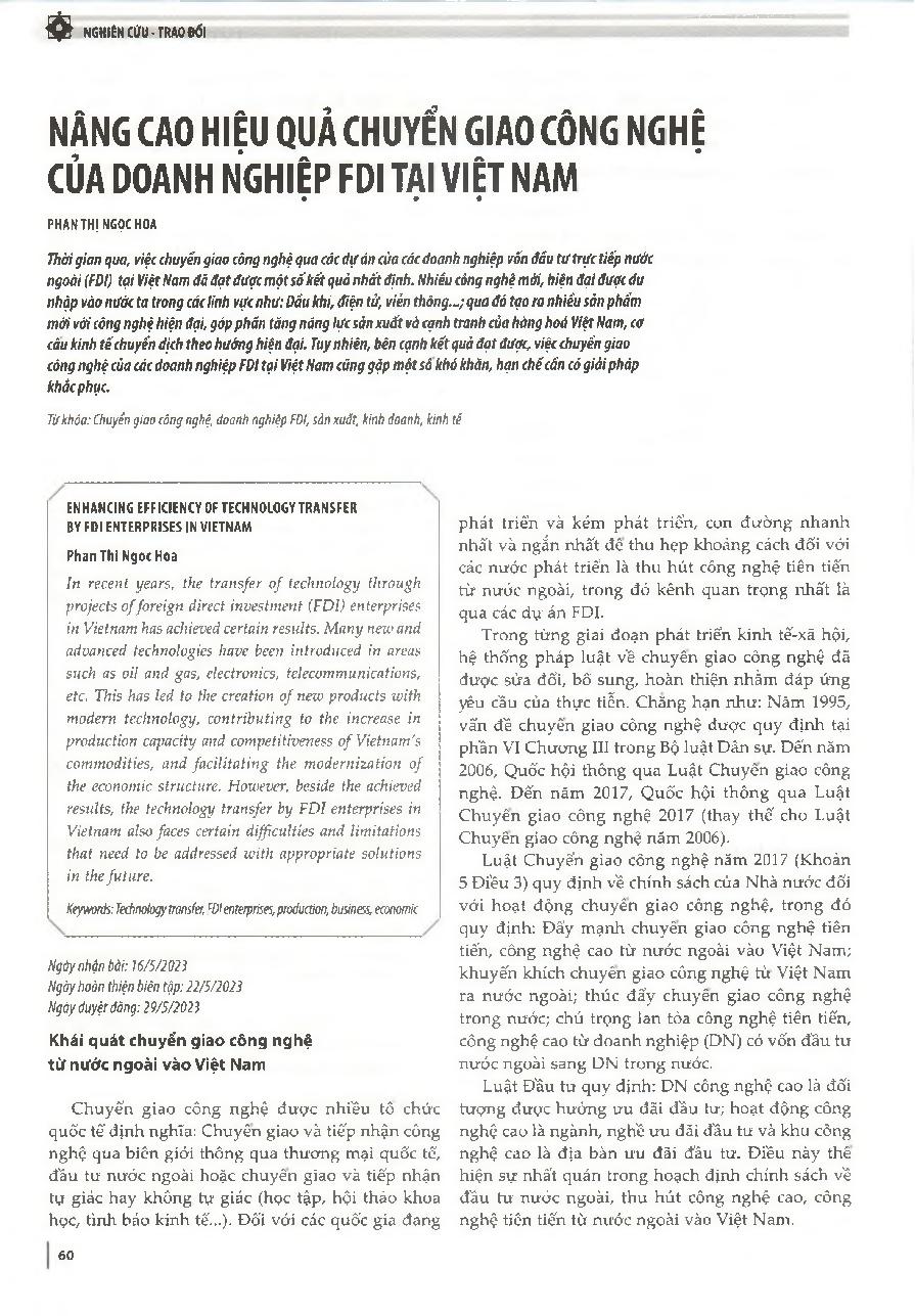 Nâng cao hiệu quả chuyển giao công nghệ của doanh nghiệp FDI tại Việt Nam