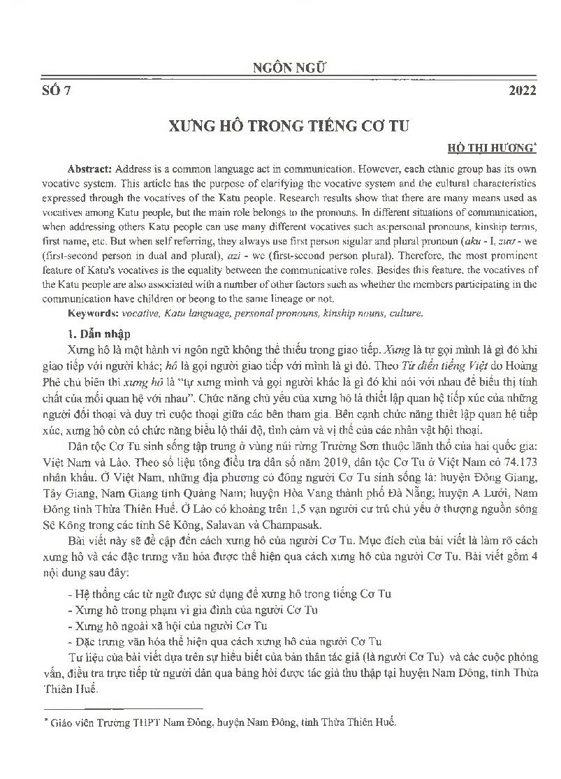 Xưng hô trong tiếng Cơ Tu = Address in Katu