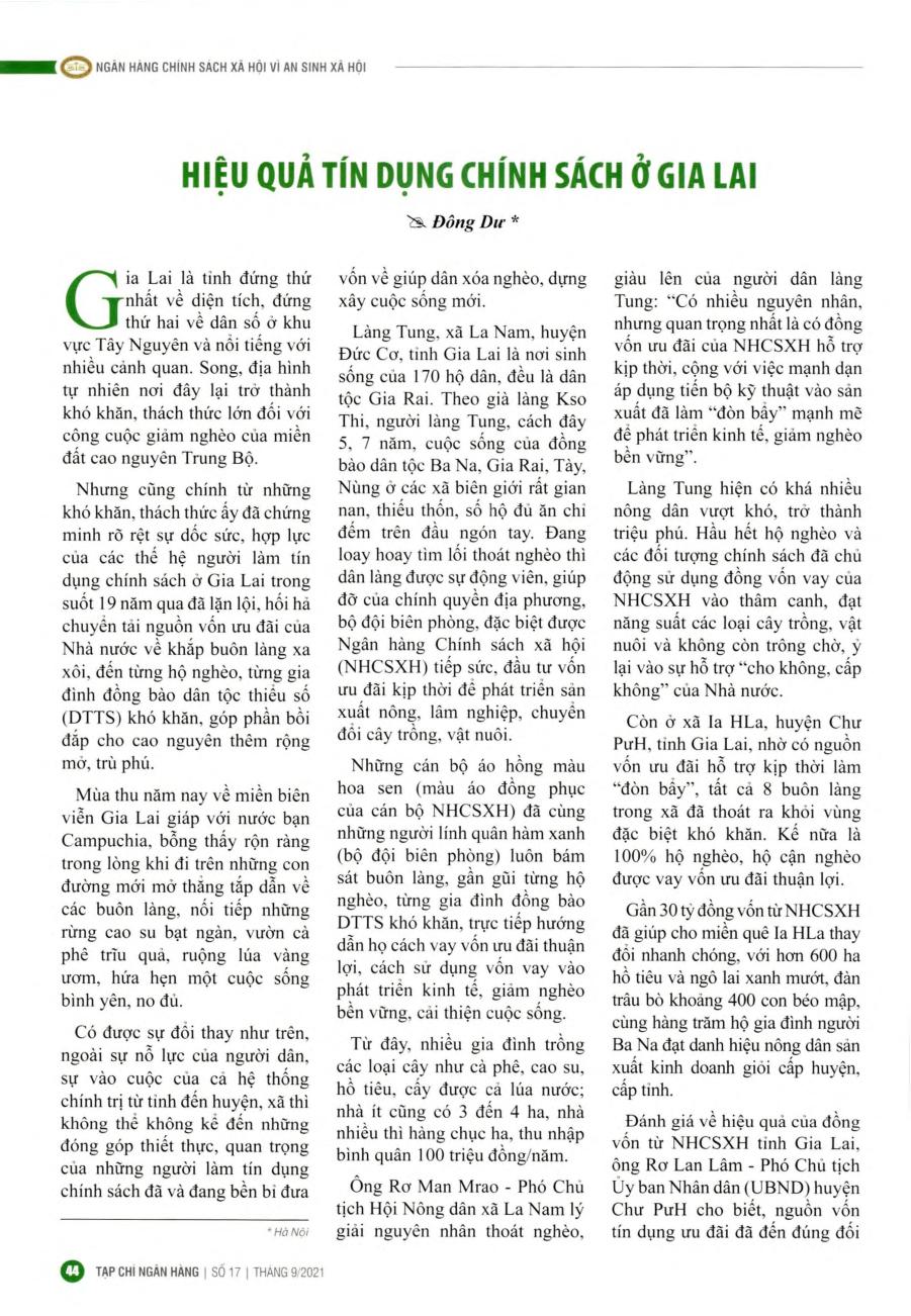 Hiệu quả tín dụng chính sách ở Gia Lai