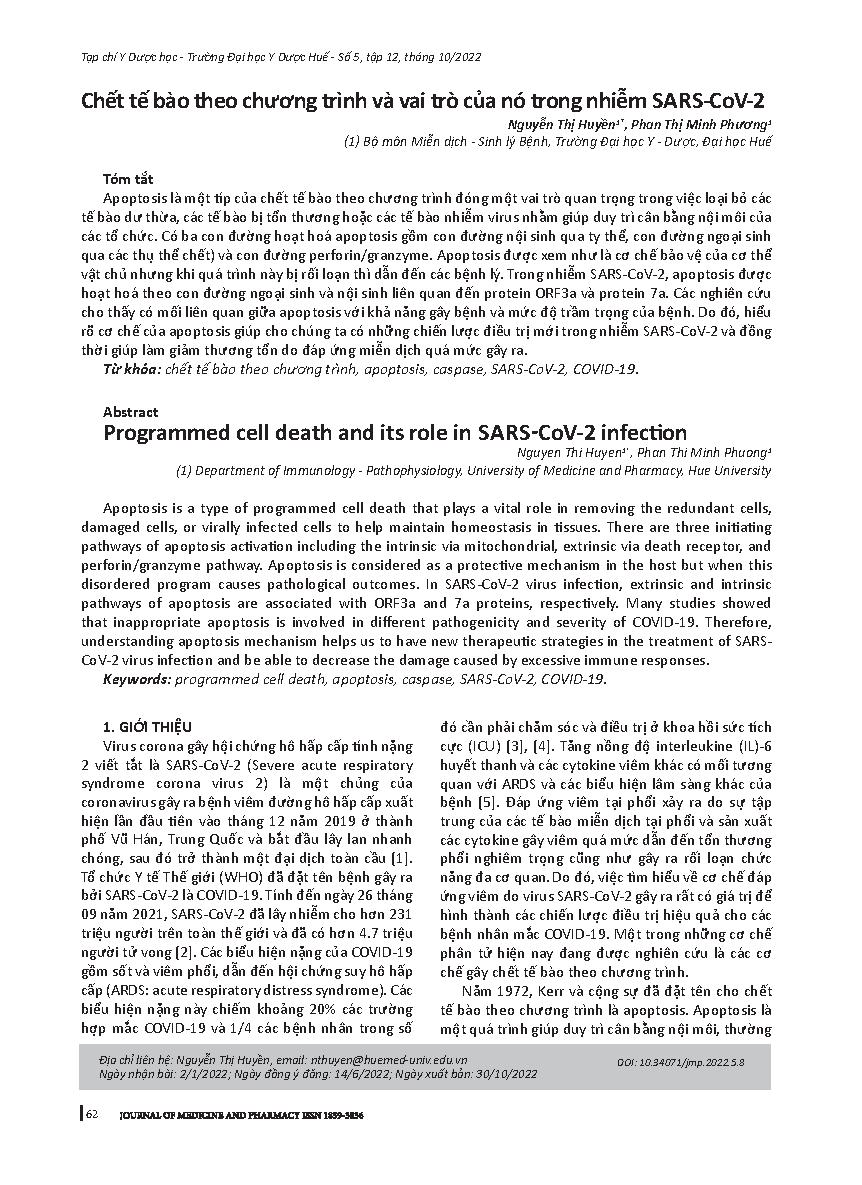 Chết tế bào theo chương trình và vai trò của nó trong nhiễm SARS-CoV-2 = Programmed cell death and its role in SARS-CoV-2 infection