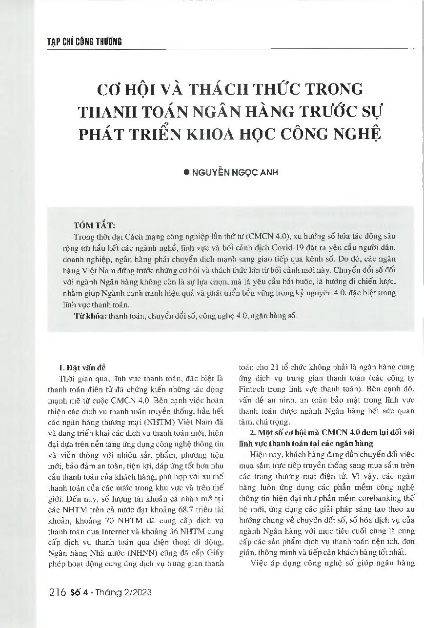 Cơ hội và thách thức trong thanh toán ngân hàng trước sự phát triển khoa học và công nghệ = Opportunities and challenges to the banking payment field in the context of technological advancements