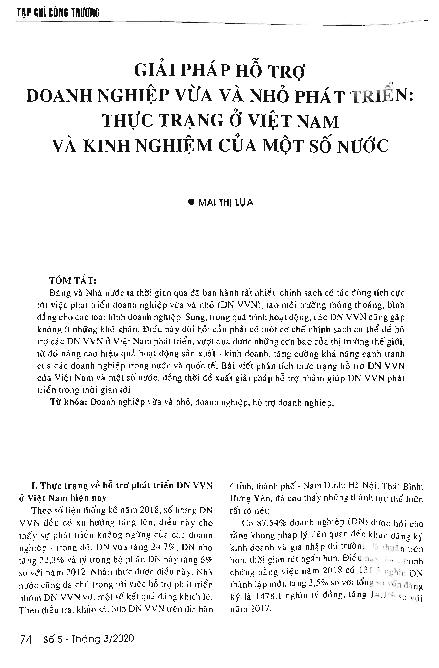 Giải pháp hỗ trợ doanh nghiệp vừa và nhỏ phát triển: Thực trạng ở Việt Nam và kinh nghiệm của một số nước = Solutions to support the growth of small and medium-sized enterprises: current situation of Vietnam and lessons from some countries