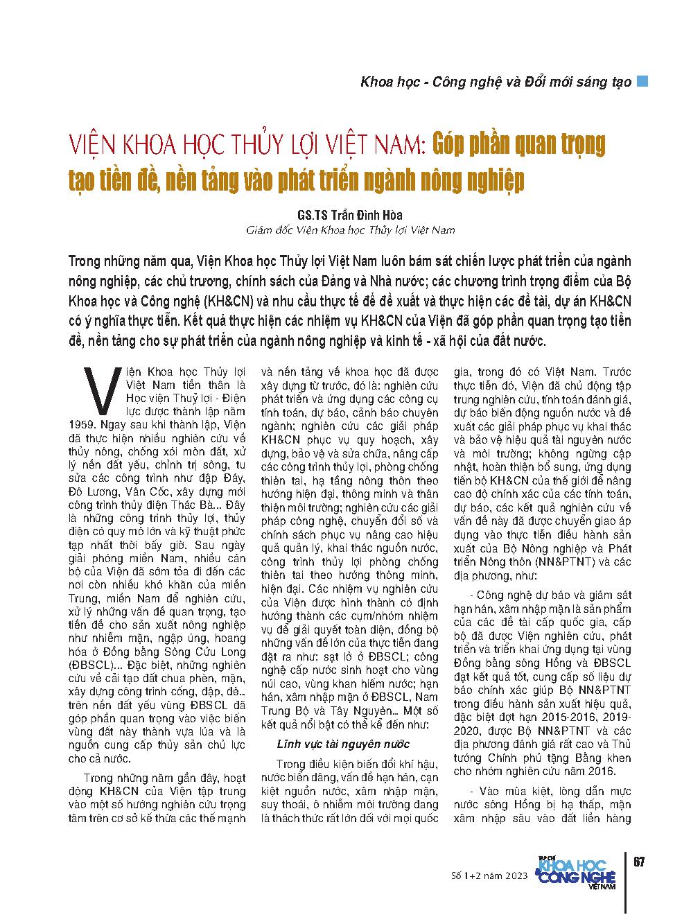 Viện Khoa học Thủy lợi Việt Nam: Góp phần quan trọng tạo tiền đề, nền tảng vào phát triển ngành nông nghiệp