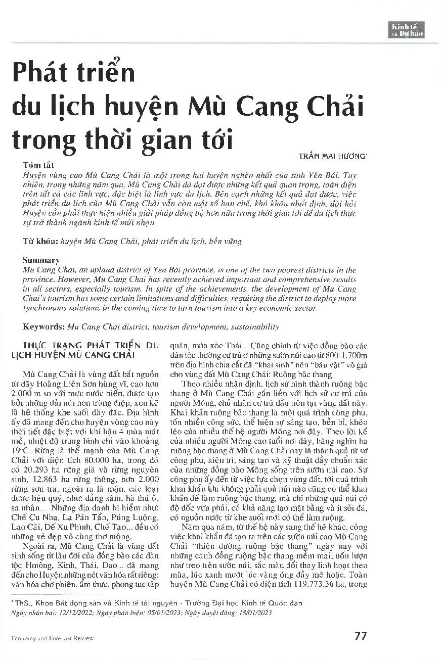 Phát triển du lịch huyện Mù Cang Chải trong thời gian tới = Development of tourism in Mu Cang Chai district in the coming time