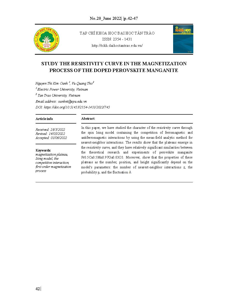 Khảo sát đường cong từ trở trong quá trình từ hóa của perovskite mangan pha tạp = Study the resistivity curve in the magnetization process of the doped perovskite manganite