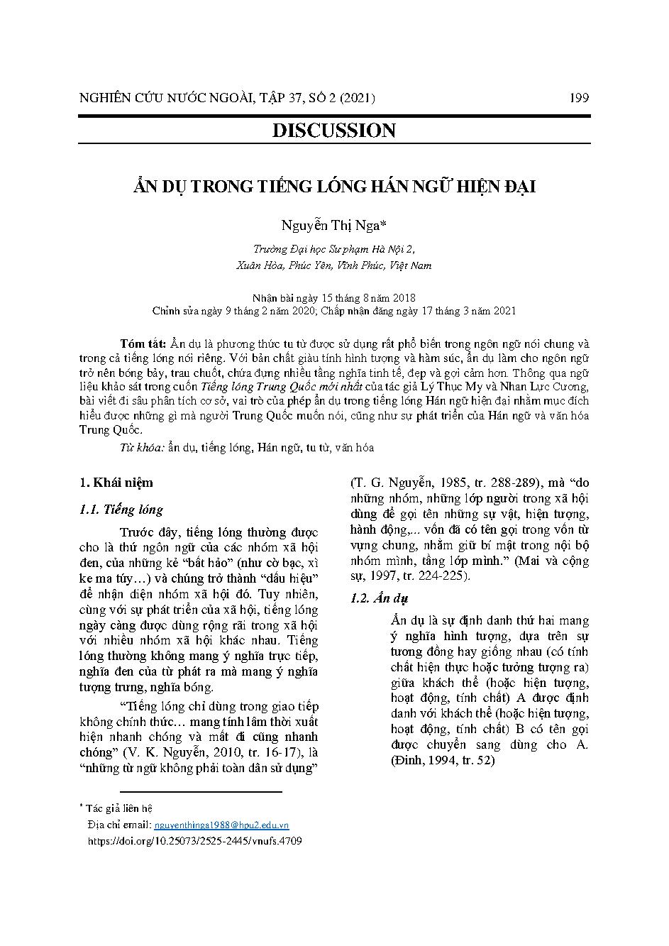 Ẩn dụ trong tiếng lóng Hán ngữ hiện đại