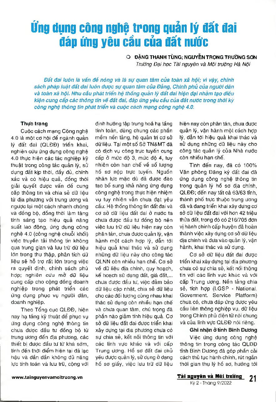 Ứng dụng công nghệ trong quản lý đất đai đáp ứng yêu cầu của đất nước
