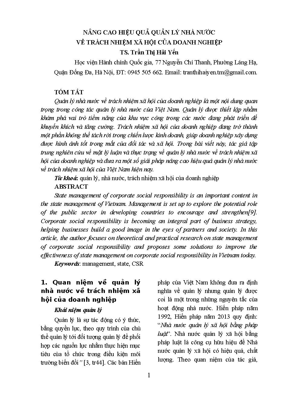 Nâng cao hiệu quả quản lý nhà nước về trách nhiệm xã hội của doanh nghiệp