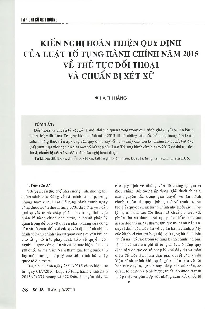 Kiến nghị hoàn thiện quy định của Luật Tố tụng hành chính năm 2015 về thủ tục đối thoại và chuẩn bị xét xử