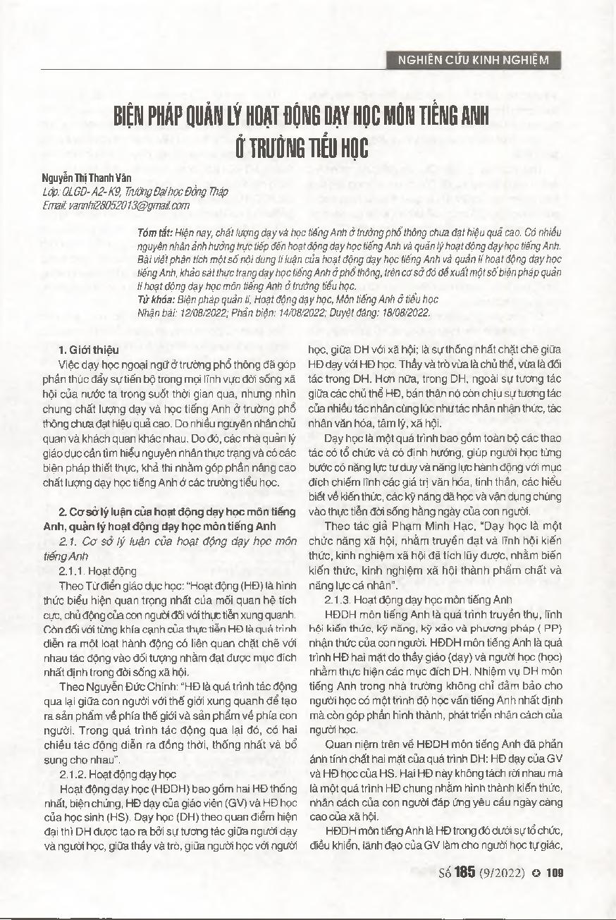Biện pháp quản lý hoạt động dạy học môn tiếng Anh ở trường tiểu học