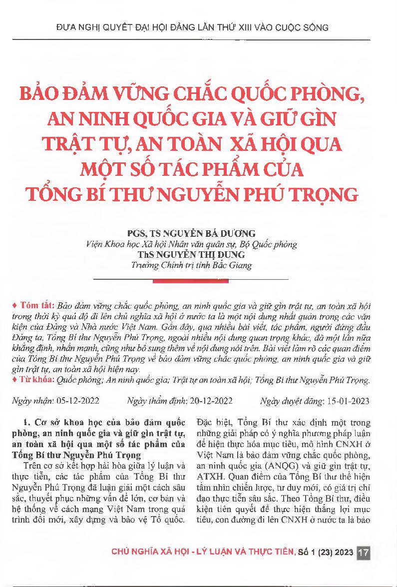 Bảo đảm vững chắc quốc phòng, an ninh quốc gia và giữ gìn trật tự, an toàn xã hội qua một số tác phẩm của Tổng Bí thư Nguyễn Phú Trọng