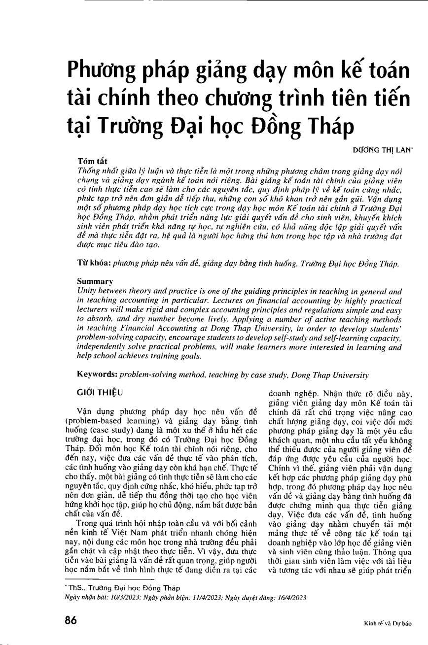Phương pháp giảng dạy môn kế toán tài chính theo chương trình liên tiến tại Trường Đại học Đồng Tháp