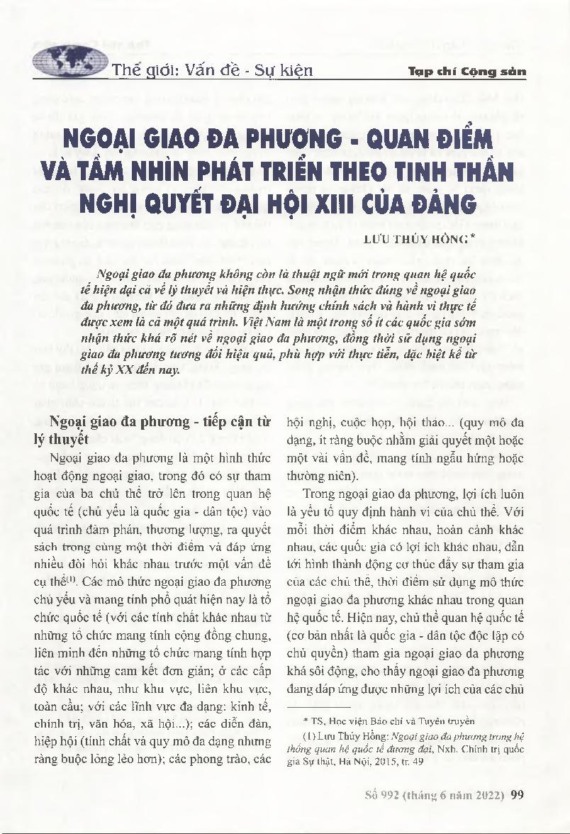 Ngoại giao đa phương - Quan điểm và tầm nhìn phát triển theo tinh thần Nghị quyết Đại hội XIII của Đảng = Multilateral diplomacy - Development perspective and vision in the spirit of the Resolution of the 13th Party Congress