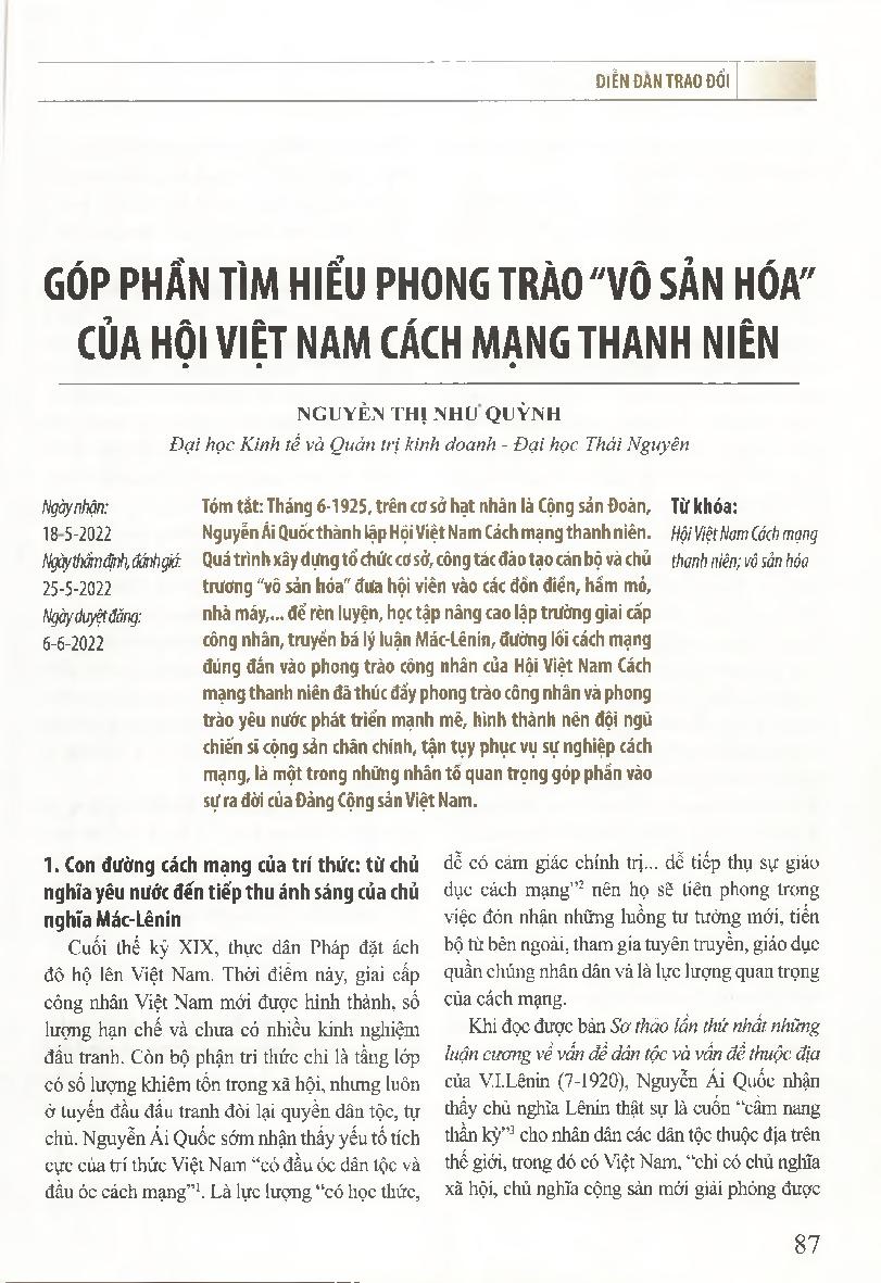 Góp phần tìm hiểu phong trào "vô sản hóa" của hội Việt Nam cách mạng thanh niên