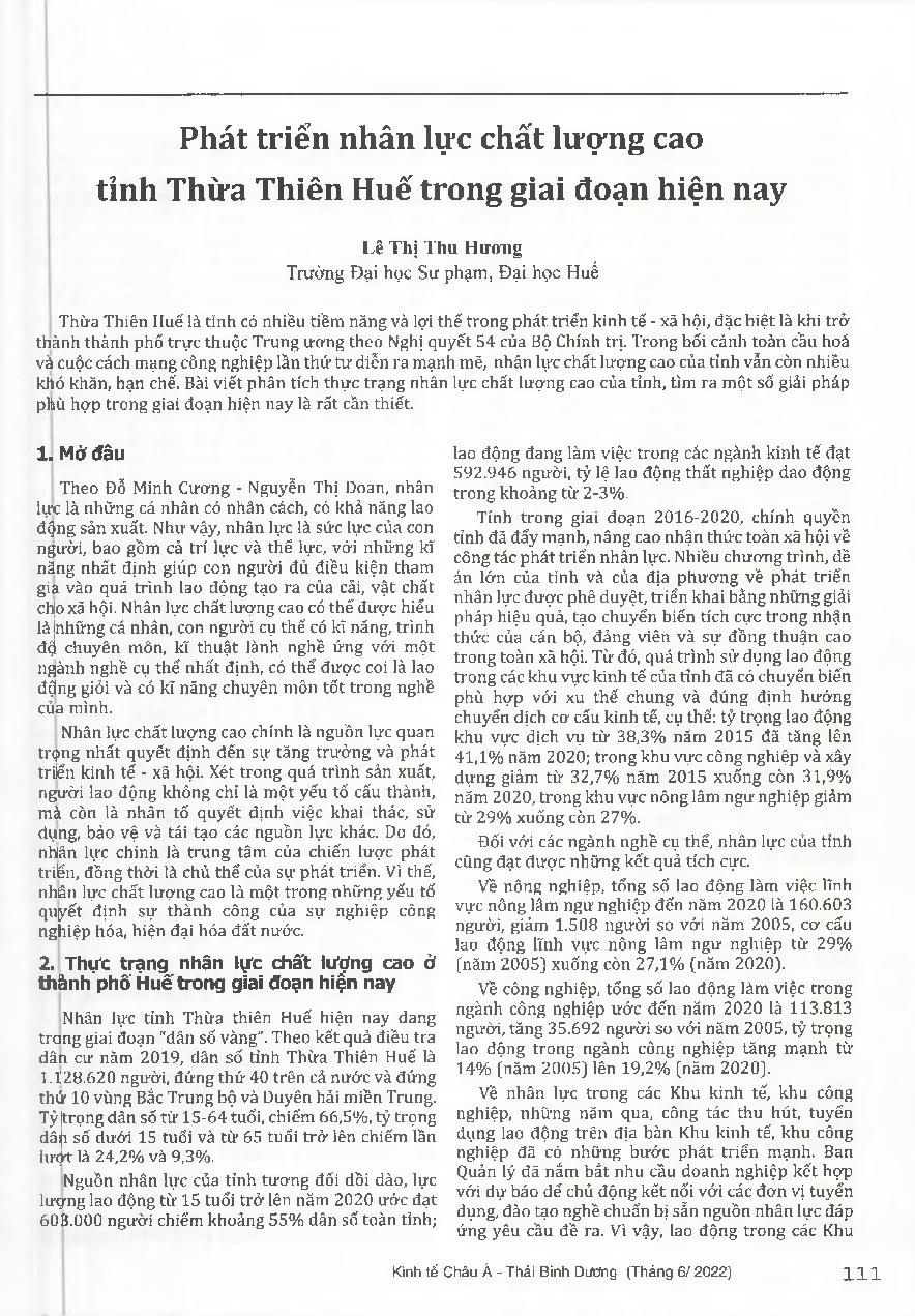 Phát triển nhân lực chất lượng cao tỉnh Thừa Thiên Huế trong giai đoạn hiện nay