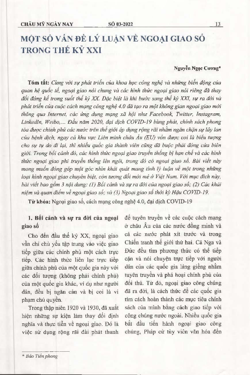 Một số vấn đề lý luận về ngoại giao số trong thế kỷ XXI