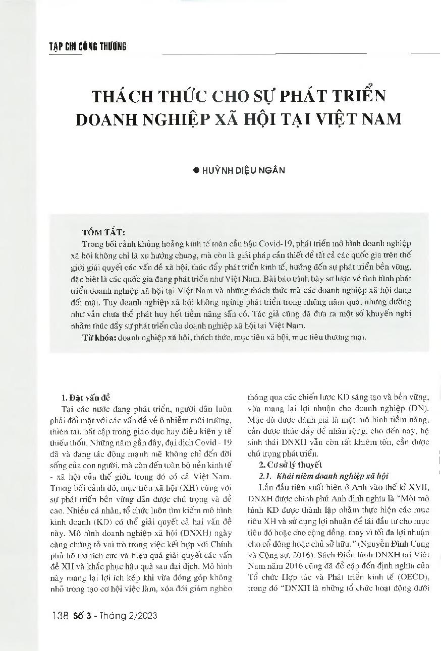 Thách thức cho sự phát triển doanh nghiệp xã hội tại Việt Nam = Challenges facing the development of social enterprises in Vietnam