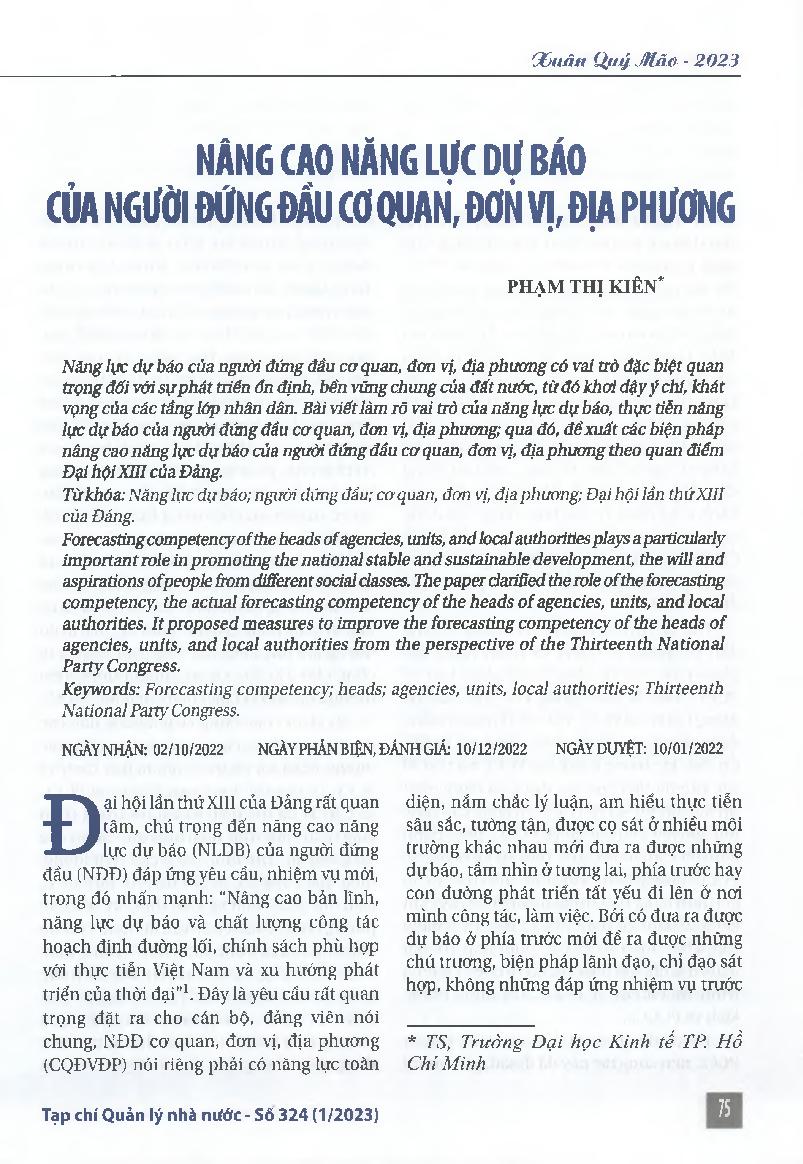 Nâng cao năng lực dự báo của người đứng đầu cơ quan, đơn vị, địa phương = Improving the forecasting competency of the heads of agencies, units, and local authorities