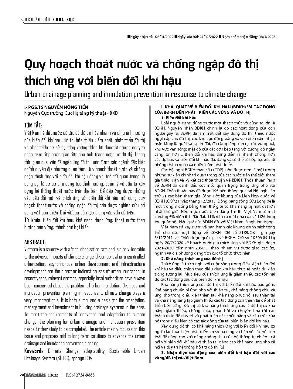 Quy hoạch thoát nước và chống ngập đô thị thích ứng với biến đổi khí hậu = Urban drainage planning and inundation prevention in response to climate change