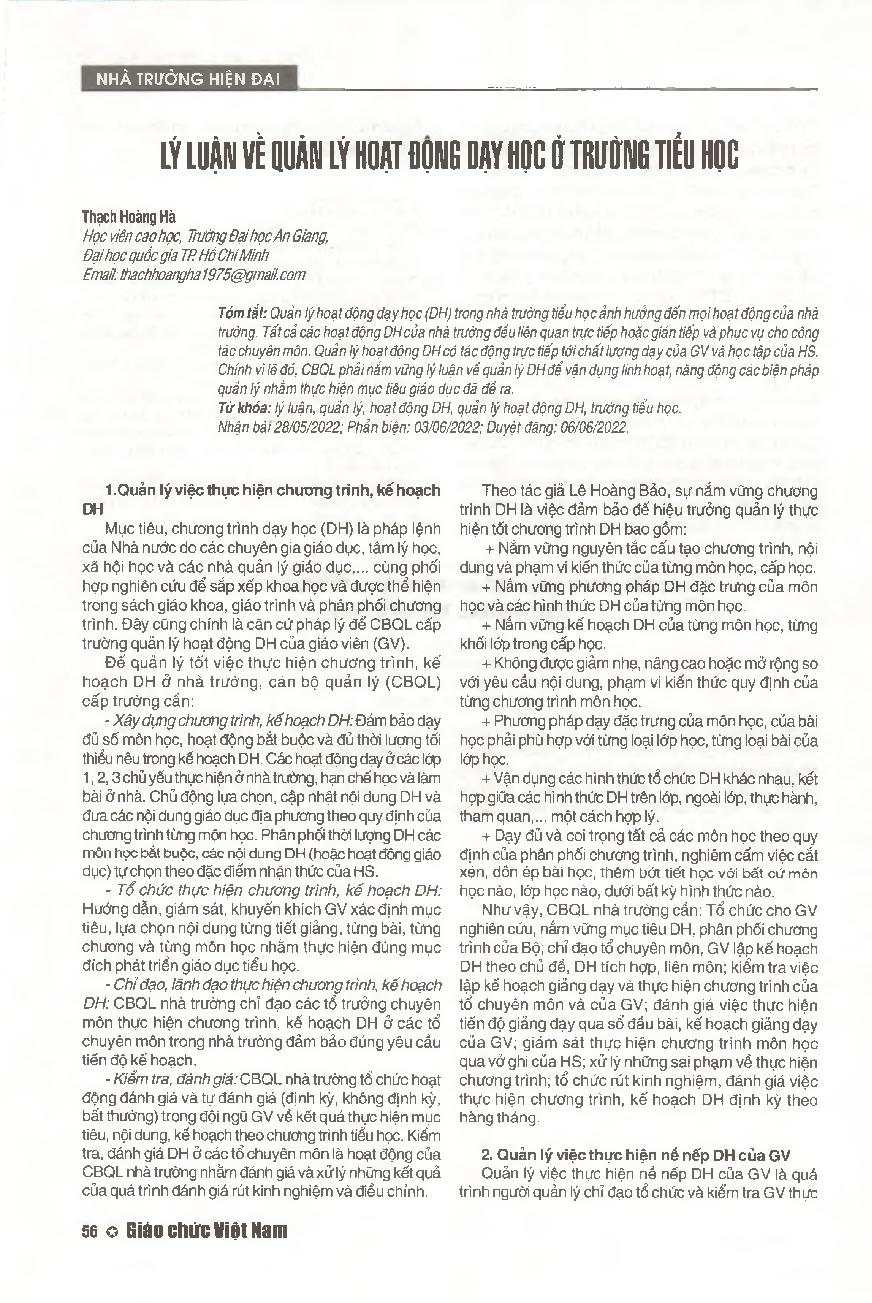 Lý luận về quản lý hoạt động dạy học ở trường tiểu học
