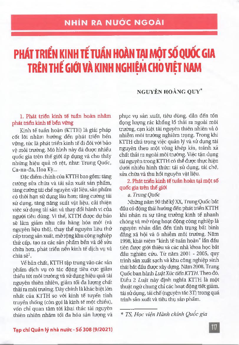 Phát triển kinh tế tuần hoàn tại một số quốc gia trên thế giới và kinh nghiệm cho Việt Nam