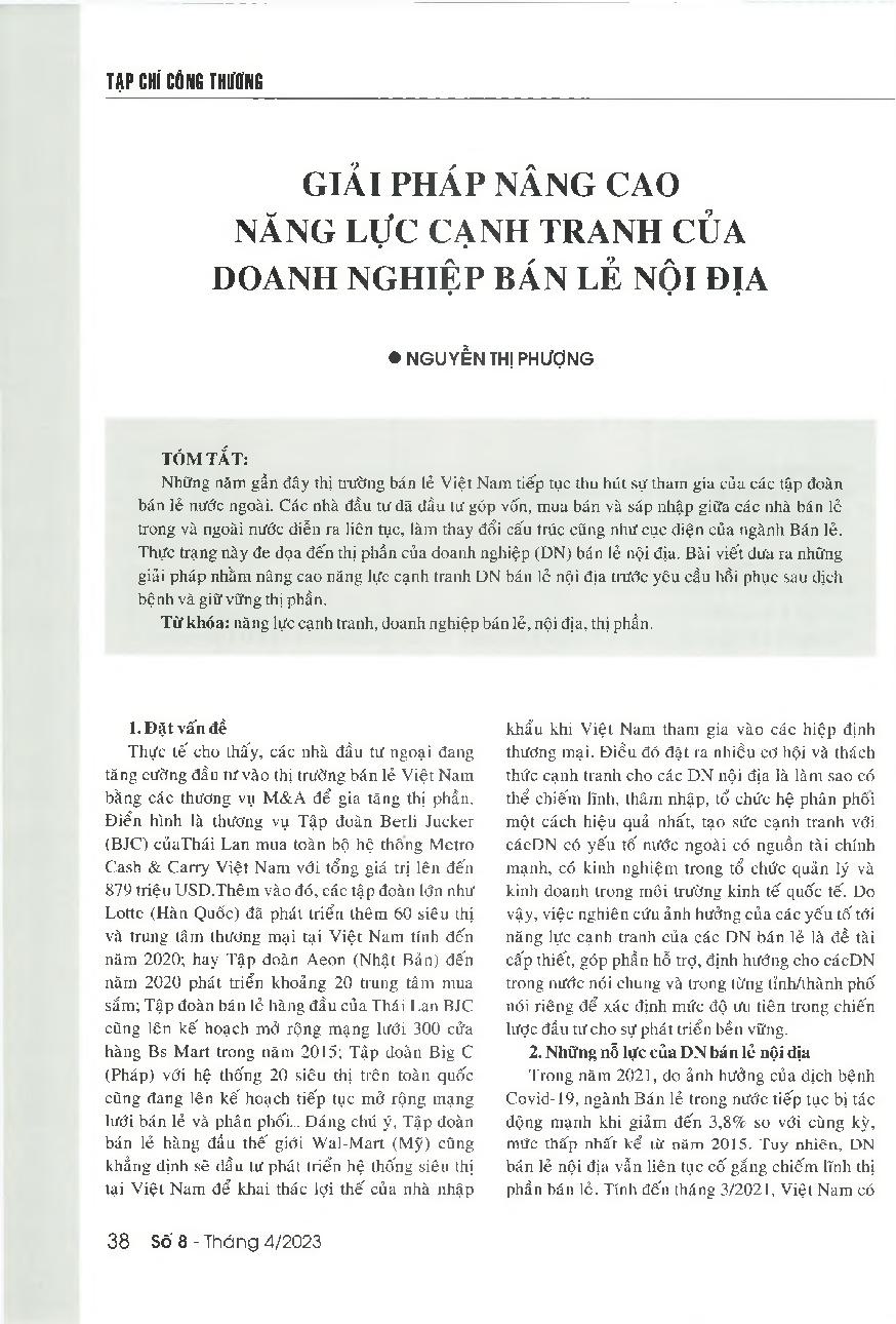 Giải pháp nâng cao năng lực cạnh tranh của doanh nghiệp bán lẻ nội địa