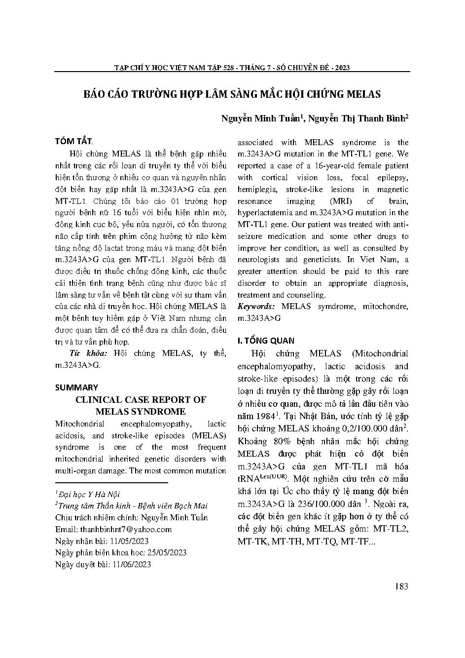 Báo cáo trường hợp lâm sàng mắc hội chứng MELAS