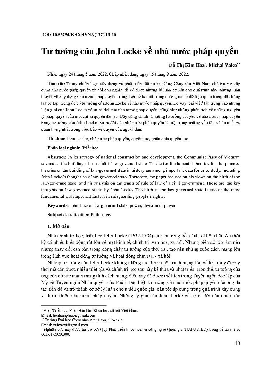 Tư tưởng của John Locke về nhà nước pháp quyền = John Locke&; 39;s Thoughts on the Rule of Law