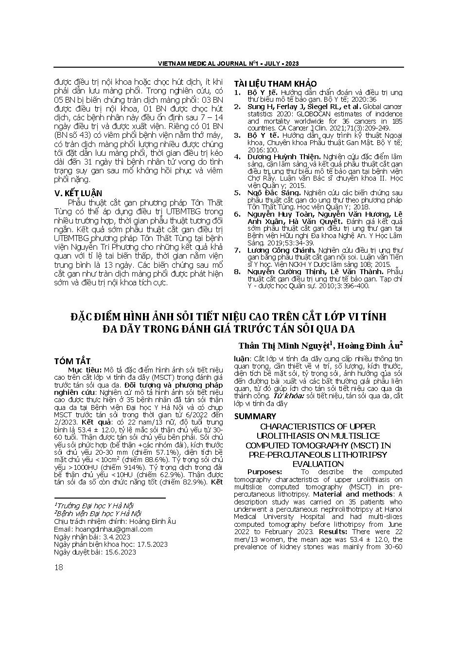 Đặc điểm hình ảnh sỏi tiết niệu cao trên cắt lớp vi tính đa dãy trong đánh giá trước tán sỏi qua da = Characteristics of upper urolithiasis on multislice computed tomography (MSCT) in pre-percutaneous lithotripsy evaluation