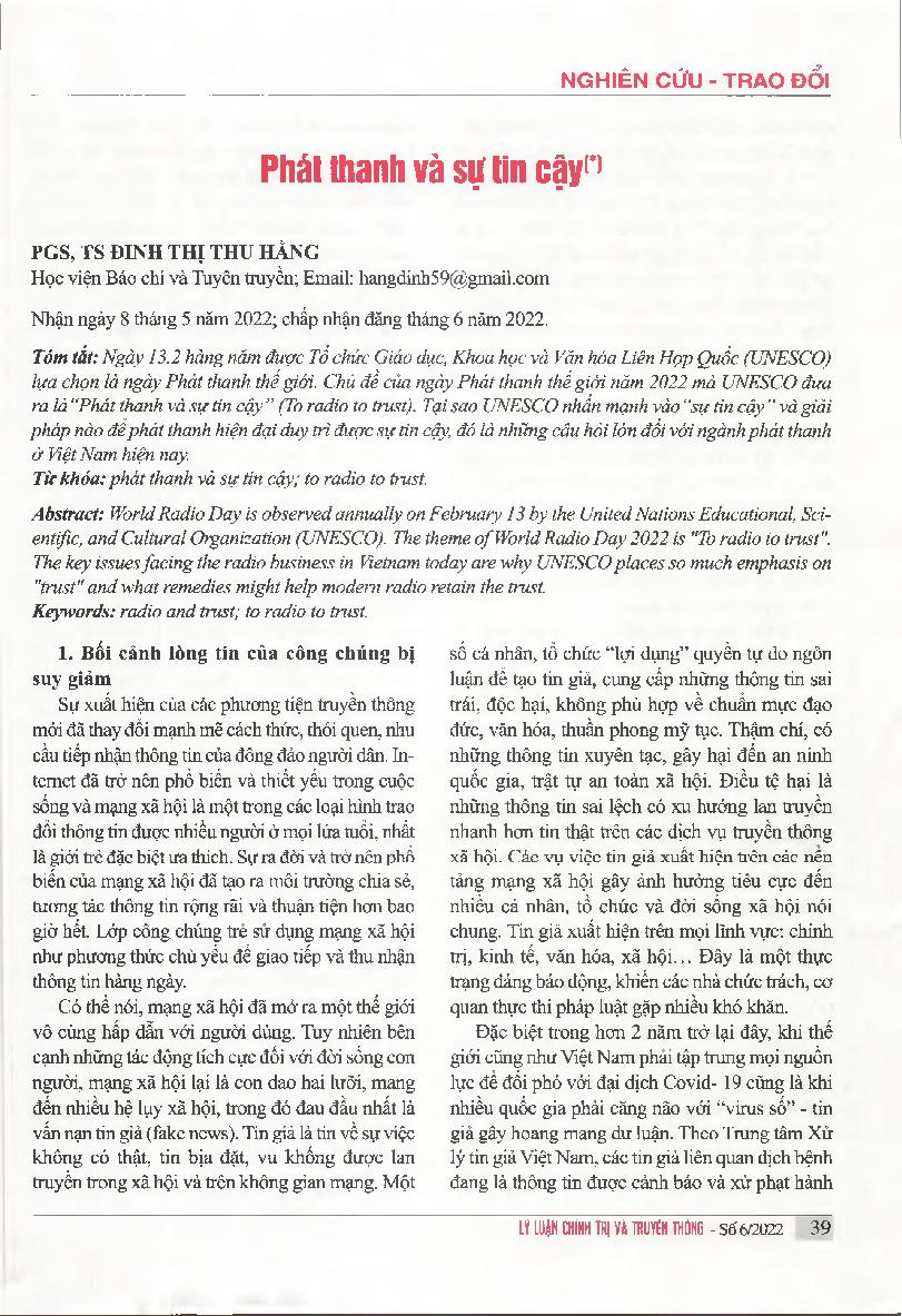 Phát thanh và sự tin cậy = Radio and trust