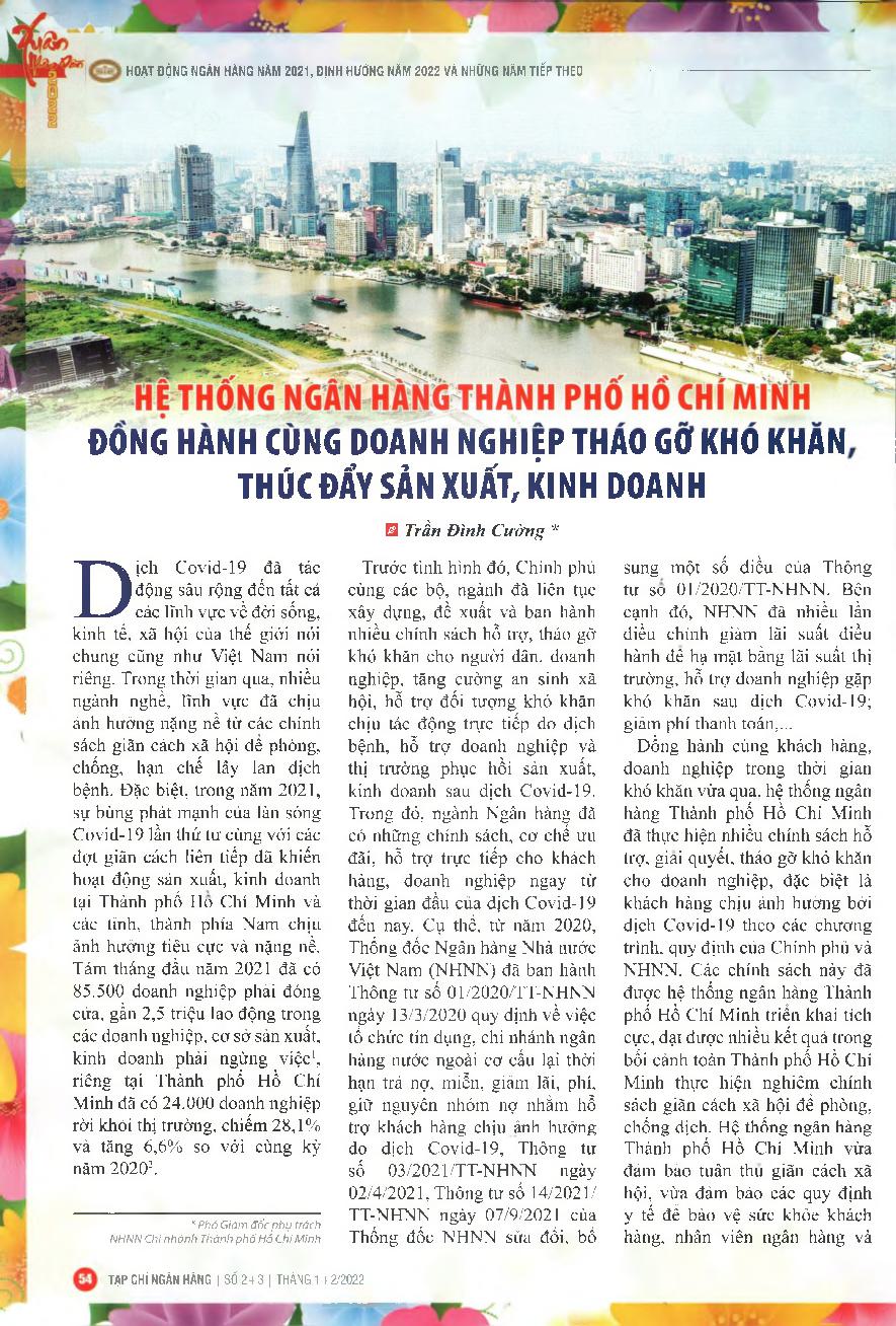 Hệ thống ngân hàng thành phố Hồ Chí Minh đồng hành cùng doanh nghiệp tháo gỡ khó khăn, thúc đẩy sản xuất, kinh doanh = Ho Chi Minh City&; 39;s banking system accompanies businesses to remove difficulties and promote production and business
