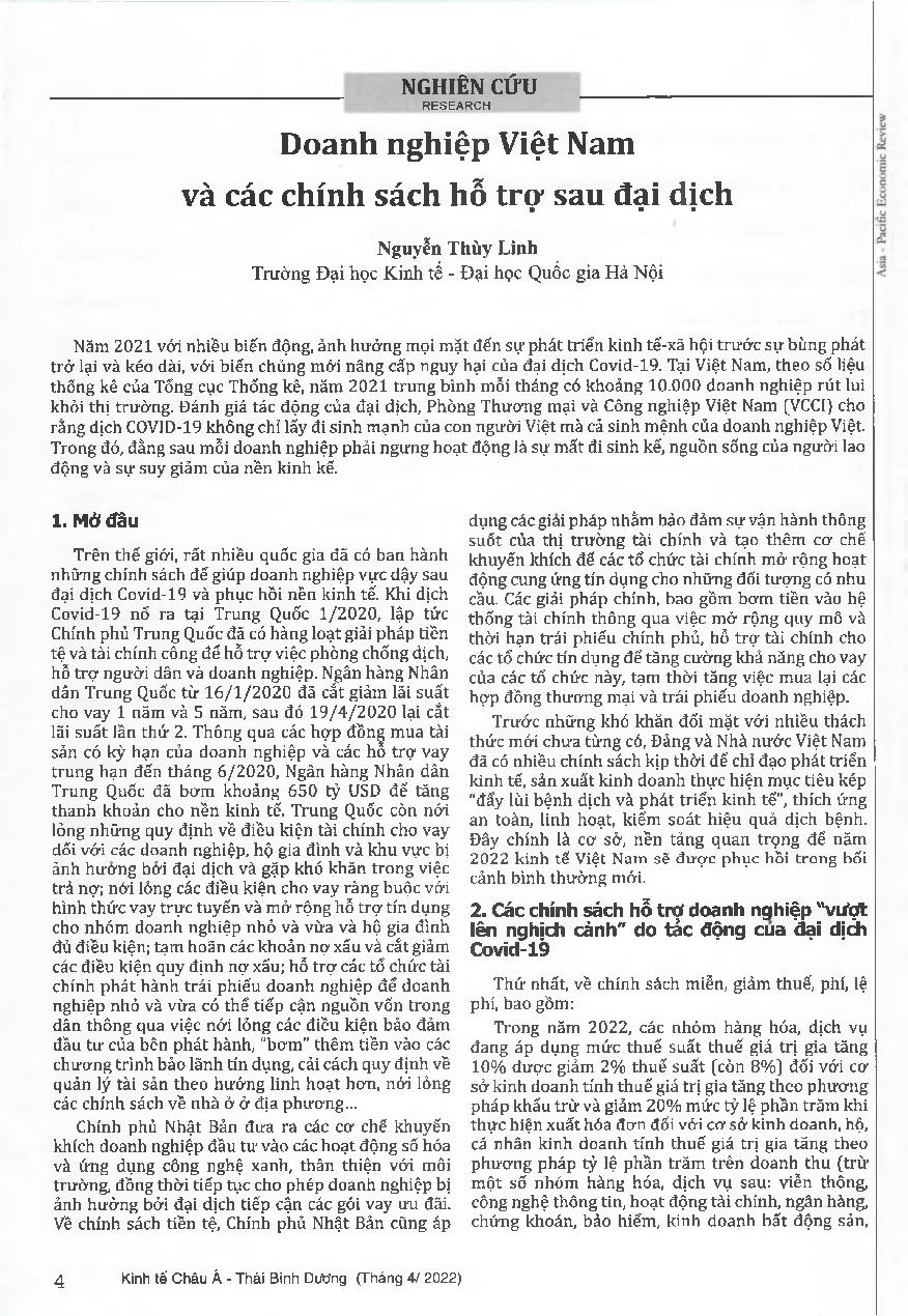 Doanh nghiệp Việt Nam và các chính sách hỗ trợ sau đại dịch