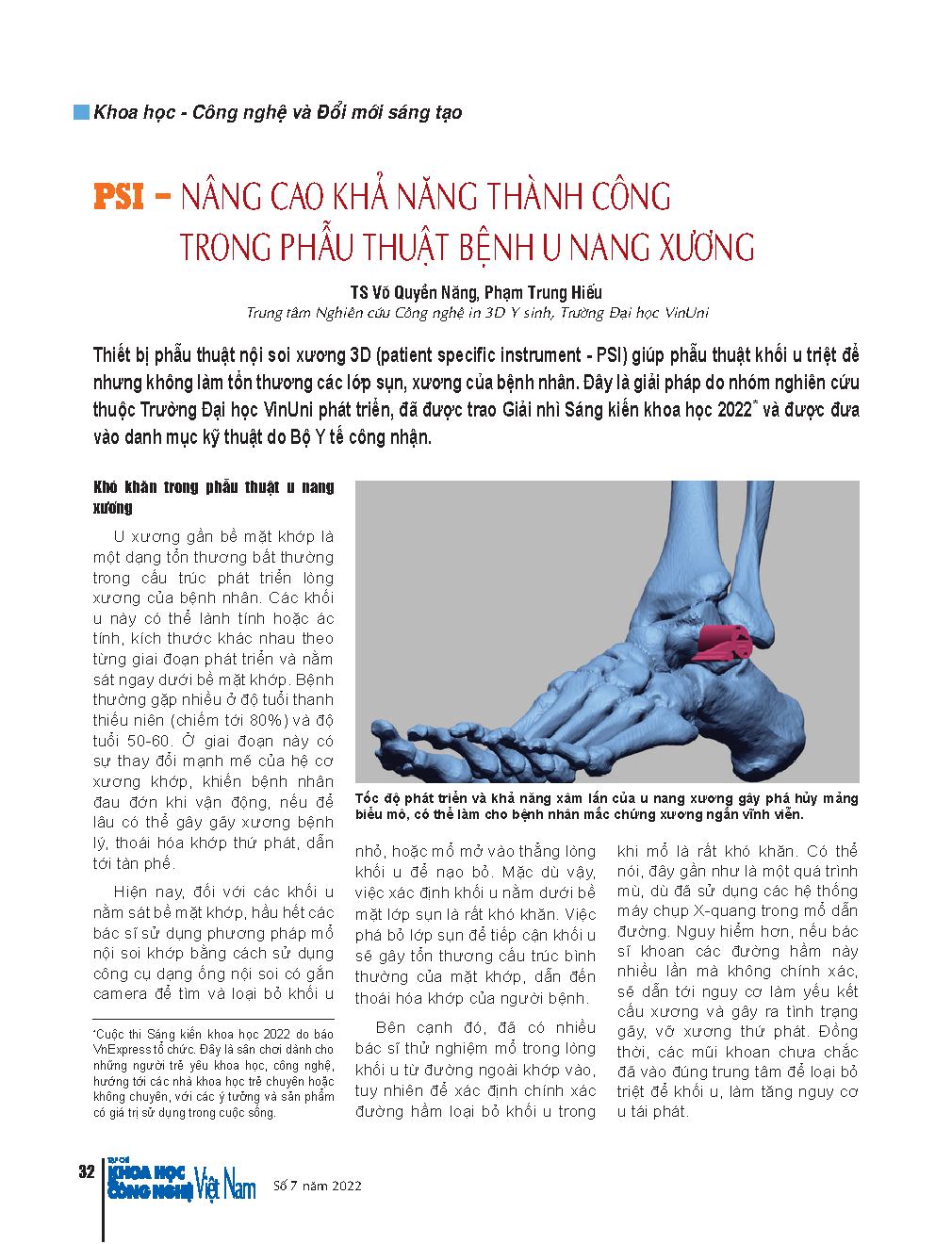PSI - Nâng cao khả năng thành công trong phẫu thuật bệnh u nang xương = PSI - Improve the probability of success in surgery for bone cysts