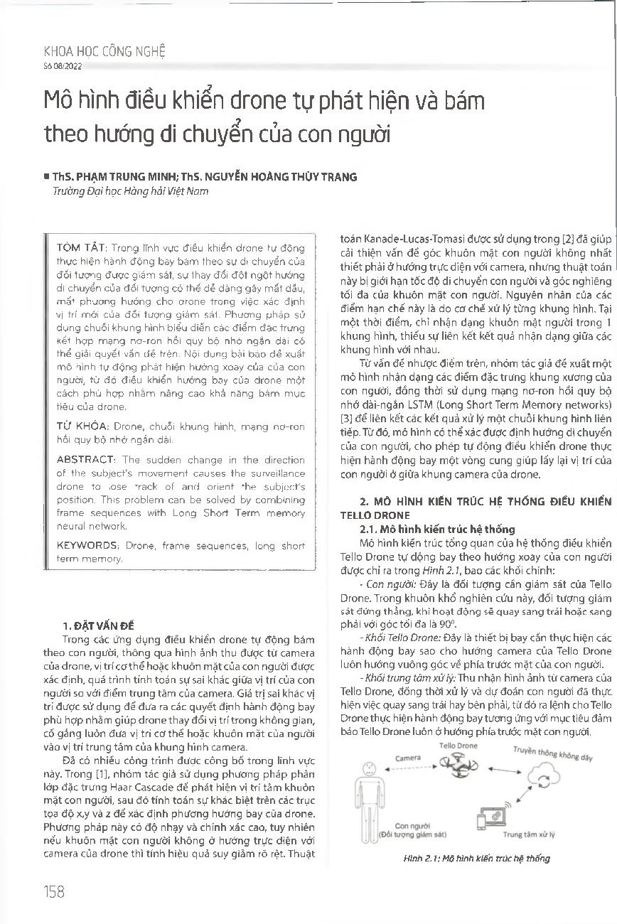 Mô hình điều khiển drone tự phát hiện và bám theo hướng di chuyển của con người = Drone control model to detect and follow the motion direction of humans