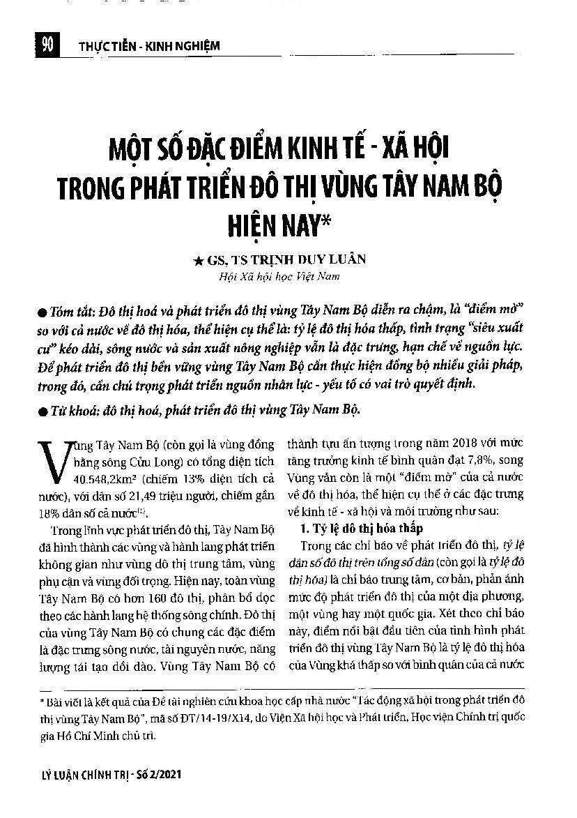 Một số đặc điểm kinh tế - xã hội trong phát triển đô thị vùng Tây Nam Bộ hiện nay