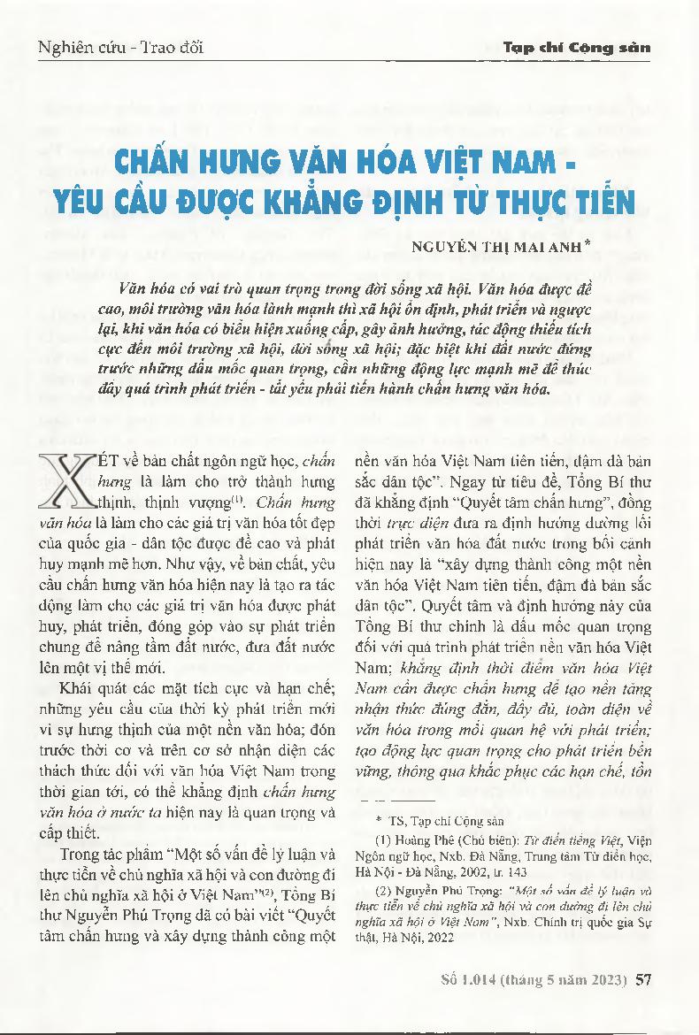 Chấn hưng văn hóa Việt Nam - Yêu cầu được khẳng định từ thực tiễn