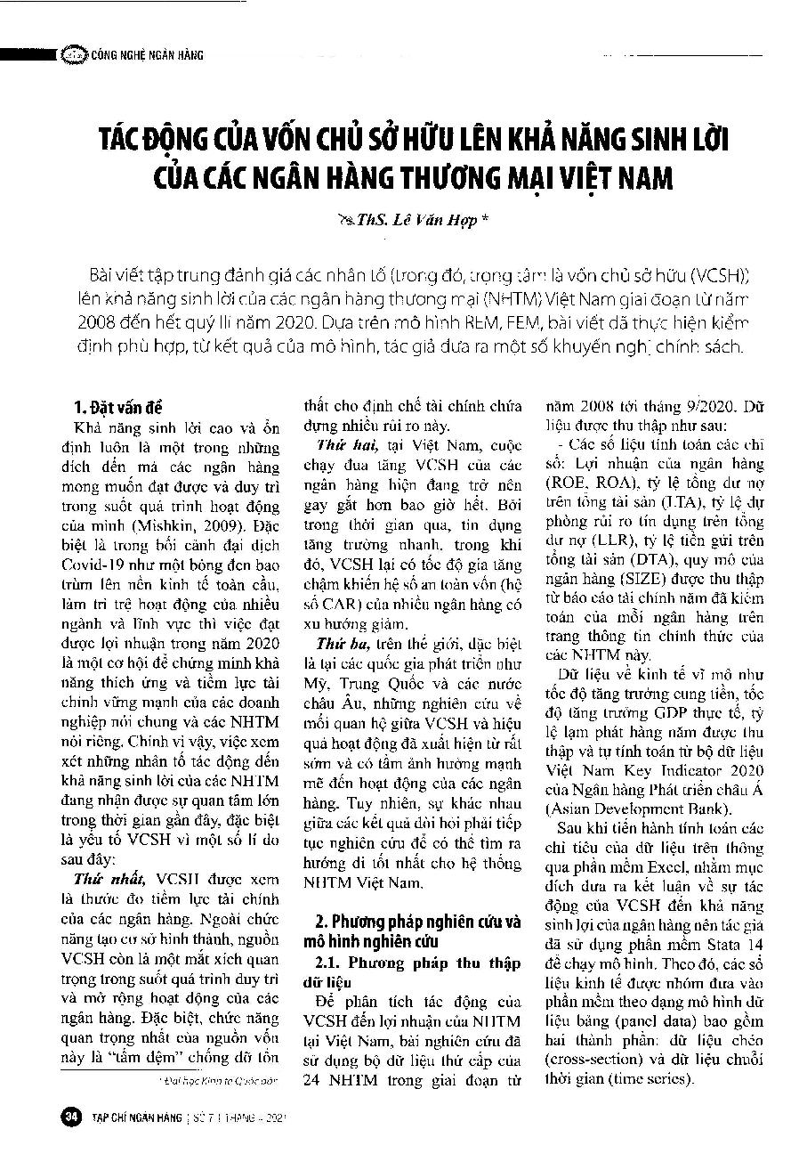 Tác động của vốn chủ sở hữu lên khả năng sinh lời của các ngân hàng thương mại Việt Nam