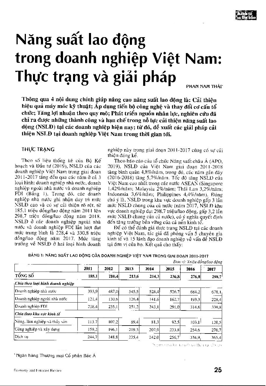 Năng suất lao động trong doanh nghiệp Việt Nam: Thực trạng và giải pháp