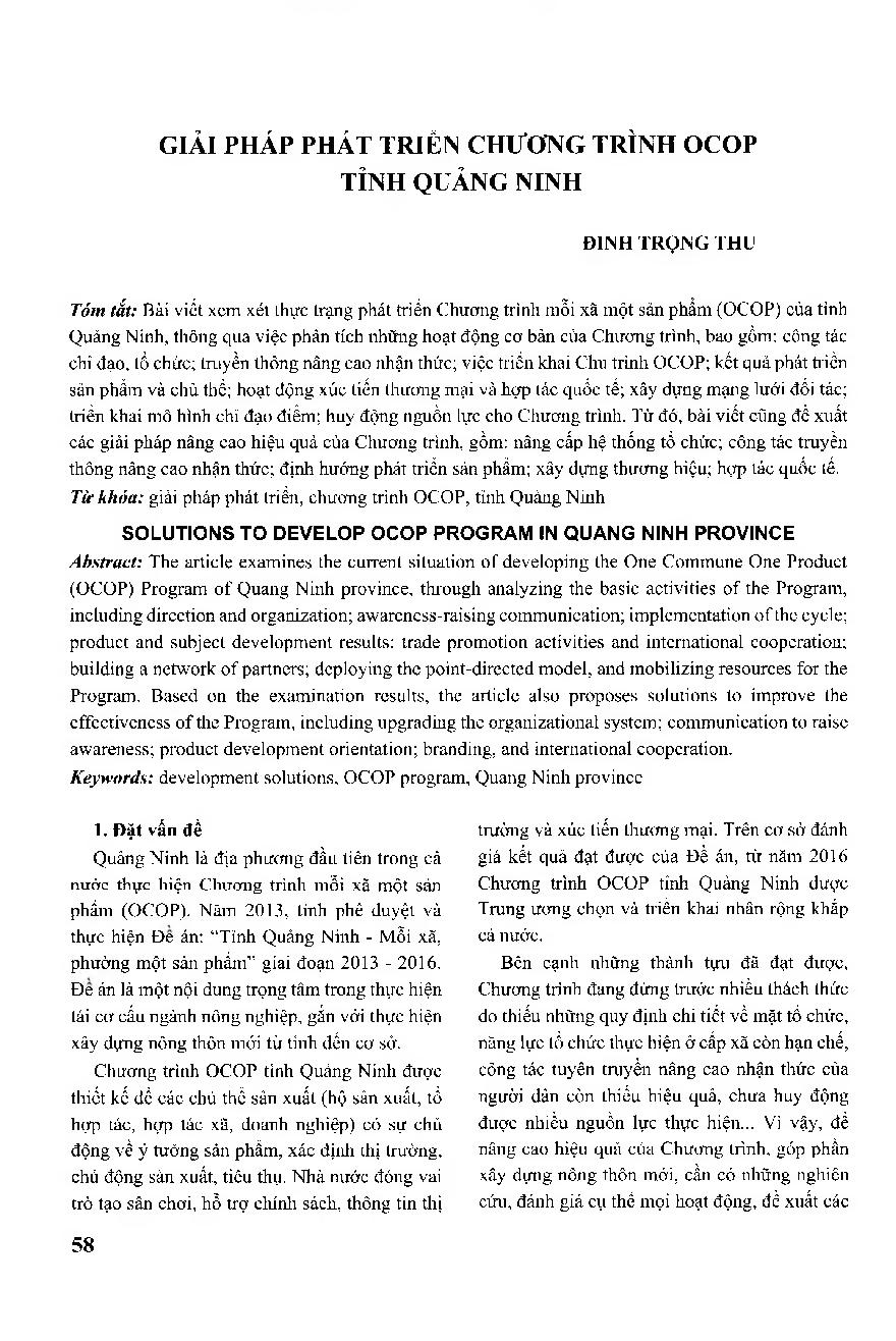 Giải pháp phát triển chương trình OCOP tỉnh Quảng Ninh = Solutions to develop OCOP program in Quang Ninh province