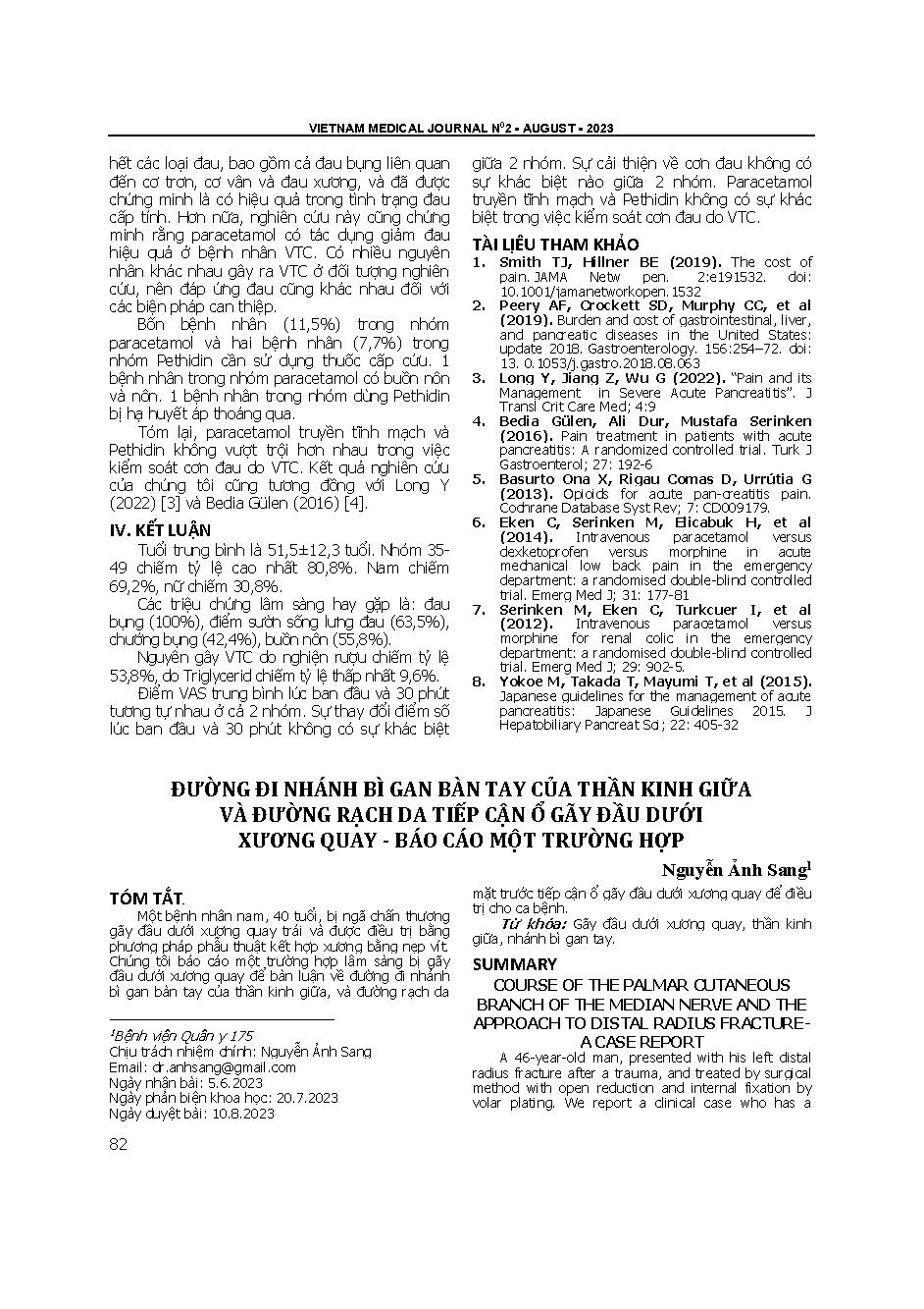 Đường đi nhánh bì gan bàn tay của thần kinh giữa và đường rạch da tiếp cận ổ gãy đầu dưới xương quay - Báo cáo một trường hợp