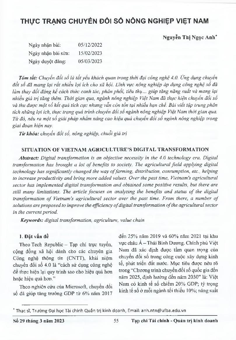 Thực trạng chuyển đổi số Nông nghiệp Việt Nam = Situation of Vietnam Agriculture's digital transformation