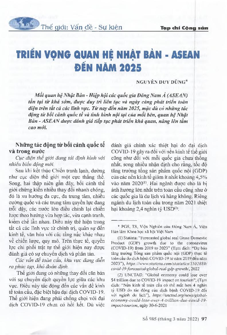 Triển vọng quan hệ Nhật Bản - ASEAN đến năm 2025 = Outlook for Japan-ASEAN relations to 2025