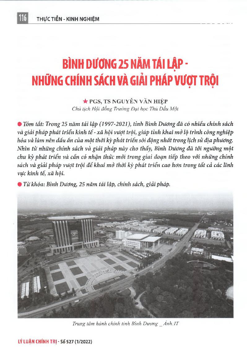 Bình Dương 25 năm tái lập - những chính sách và giải pháp vượt trội