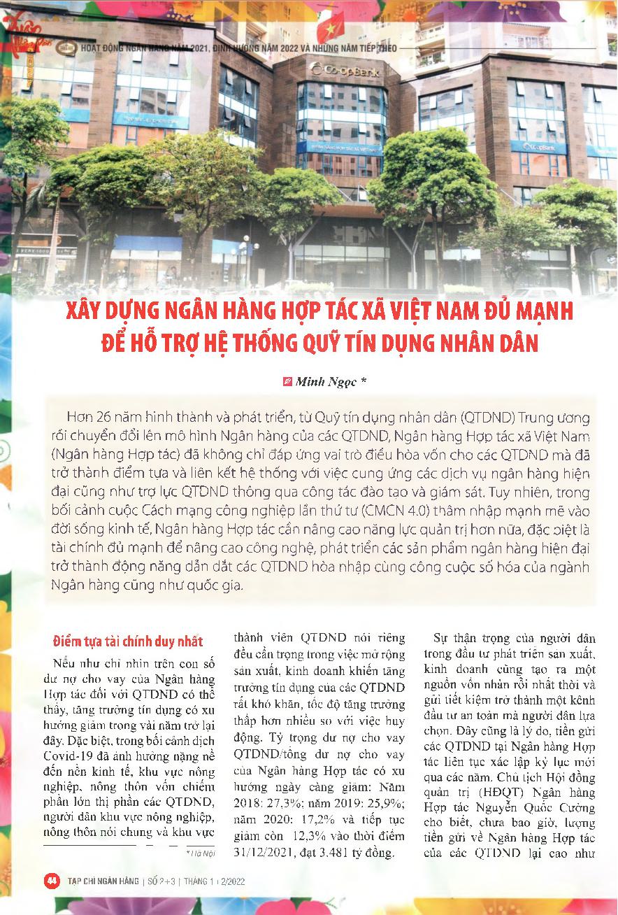 Xây dựng Ngân hàng Hợp tác xã Việt Nam đủ mạnh để hỗ trợ hệ thống Quỹ tín dụng nhân dân = Building a Vietnam Cooperative Bank strong enough to support the People&; 39;s Credit Fund system