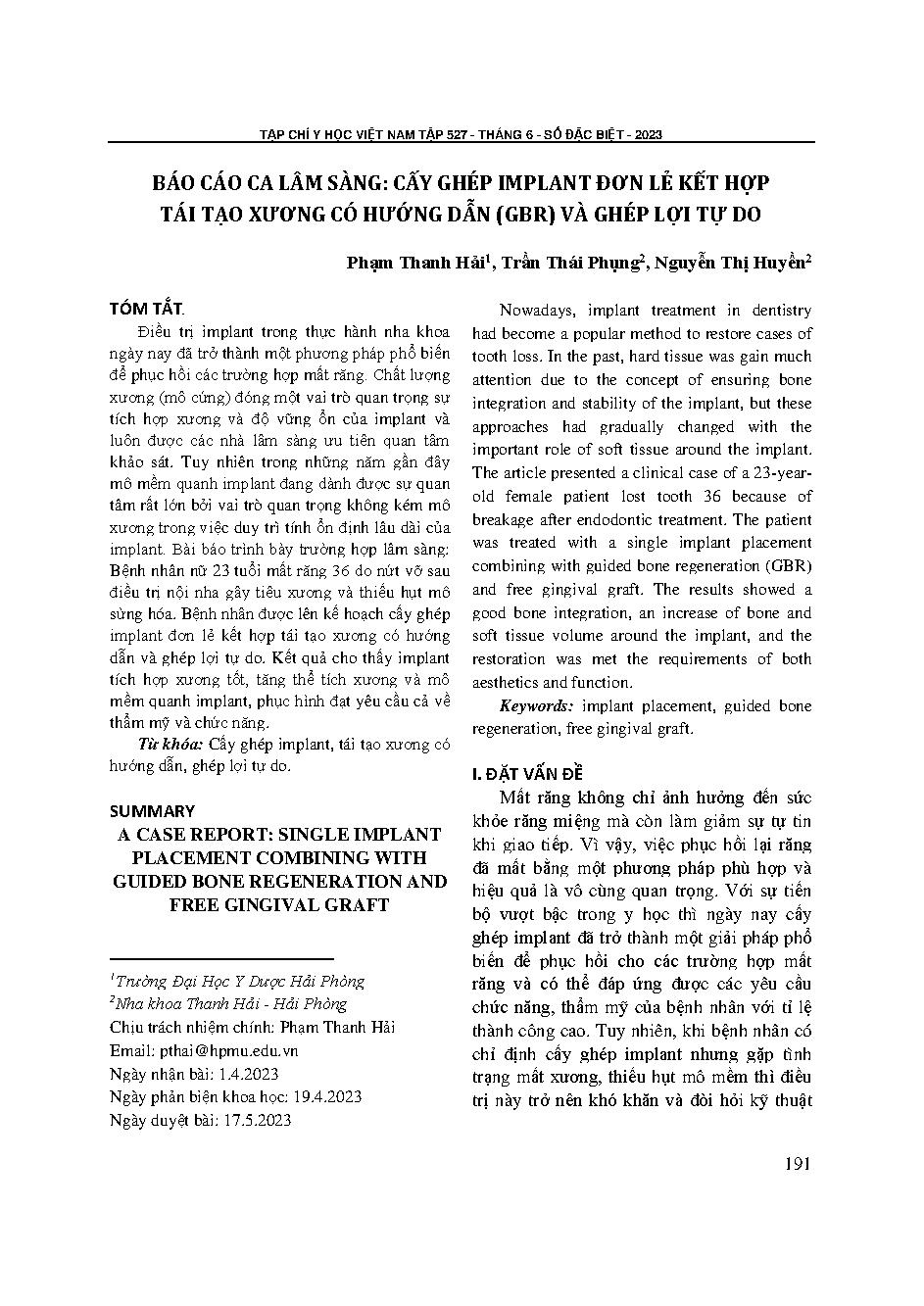 Báo cáo ca lâm sàng: cấy ghép implant đơn lẻ kết hợp tái tạo xương có hướng dẫn (gbr) và ghép lợi tự do