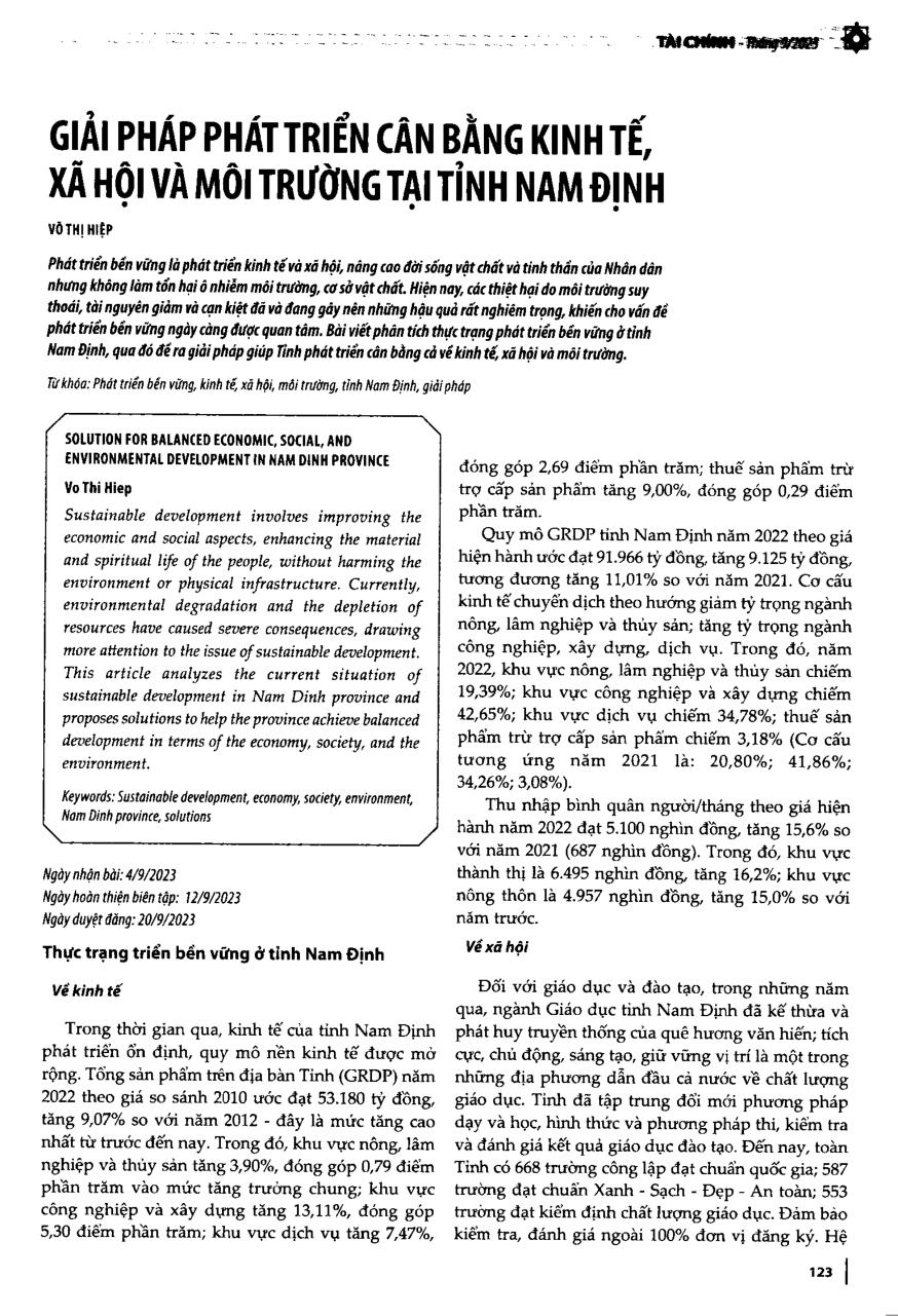 Giải pháp phát triển cân bằng kinh tế, xã hội và môi trường tại tỉnh Nam Định