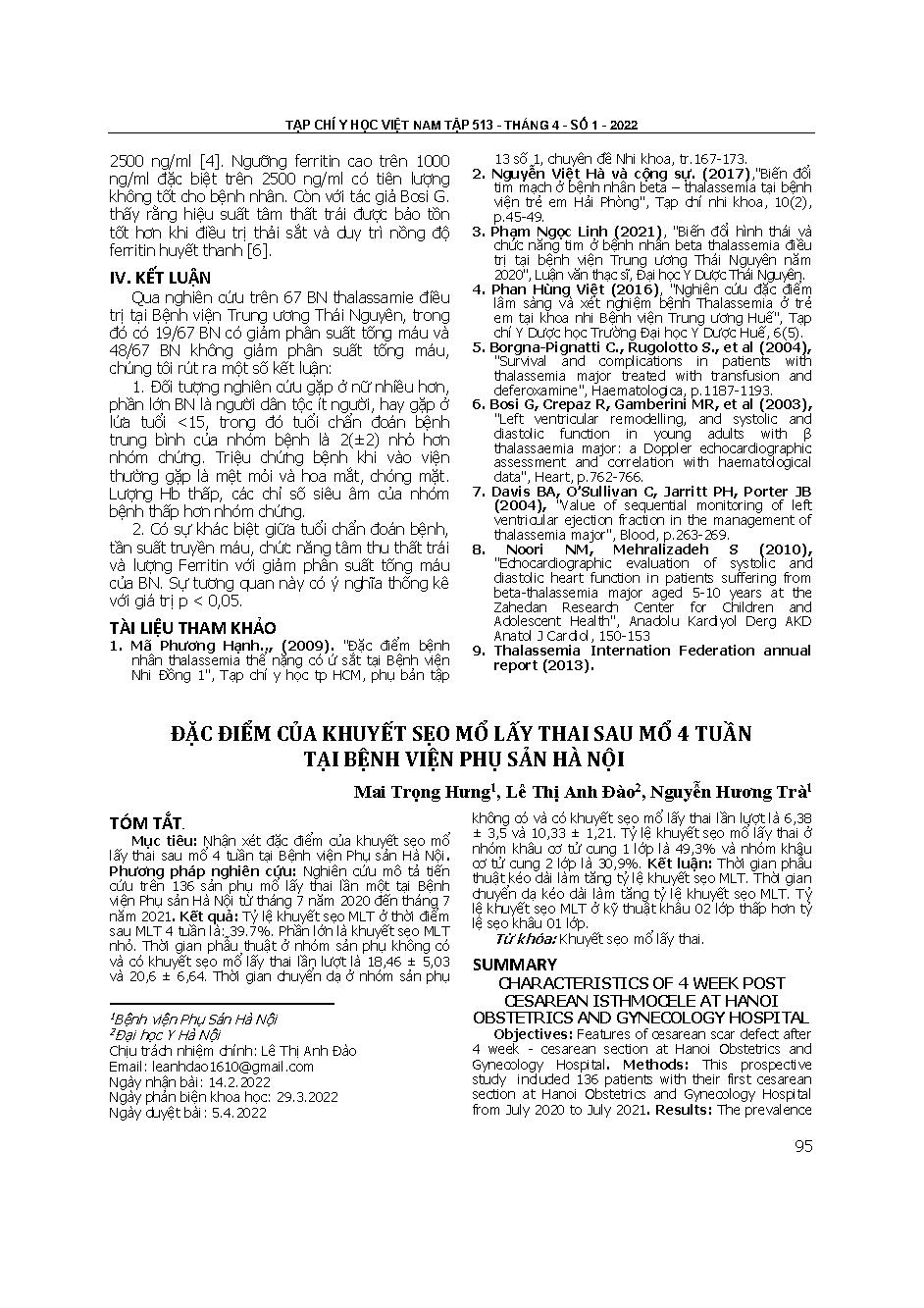 Đặc điểm của khuyết sẹo mổ lấy thai sau mổ 4 tuần tại Bệnh viện Phụ sản Hà Nội = Characteristics of 4 week post cesarean isthmocele at Hanoi obstetrics and gynecology hospital