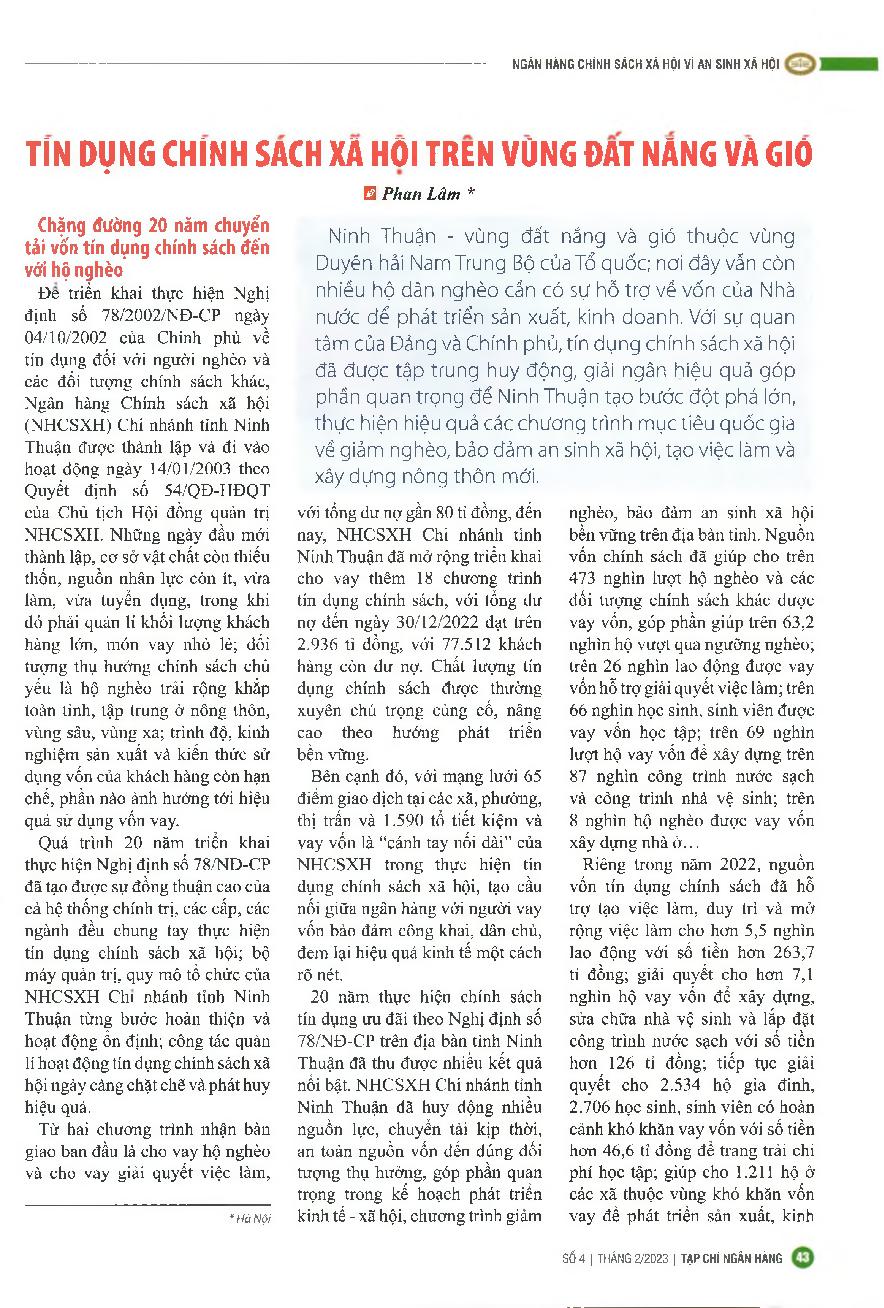 Tín dụng chính sách xã hội trên vùng đất nắng và gió = Social policy credit in the land of sunshine and wind
