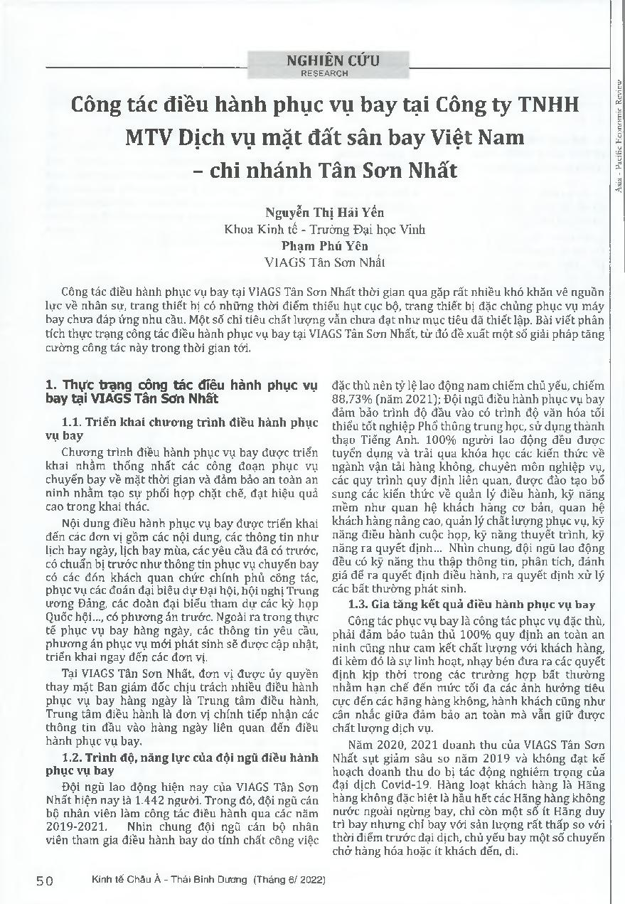 Công tác điều hành phục vụ bay tại Công ty TNHH MTV Dịch vụ mặt đất sân bay Việt Nam - chi nhánh Tân Sơn Nhất